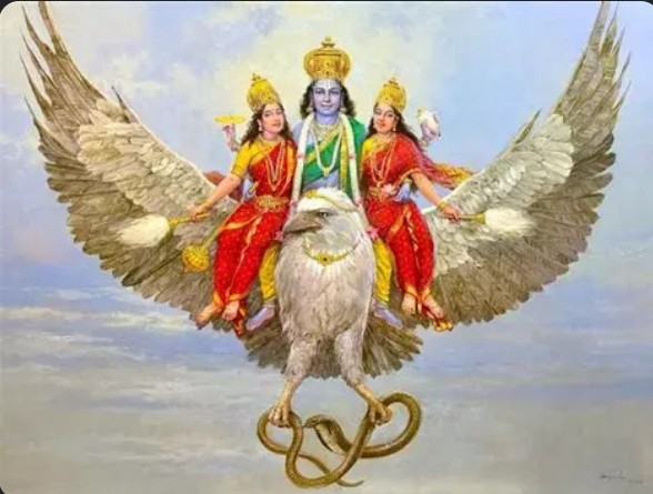 So Garuda is a giant mythic eagle. It is represented in many ways sometimes with red wings, the beak of an eagle and a human body. This posture is symbolising a presence, an extreme consciousness, a great charisma at the service of a supreme being, the god Vishnu. The bird ensures a continuity, an illuminated intelligence and a perfect balance that is necessary to fly over all possible obstacles. Much more can be said but this is the essence.